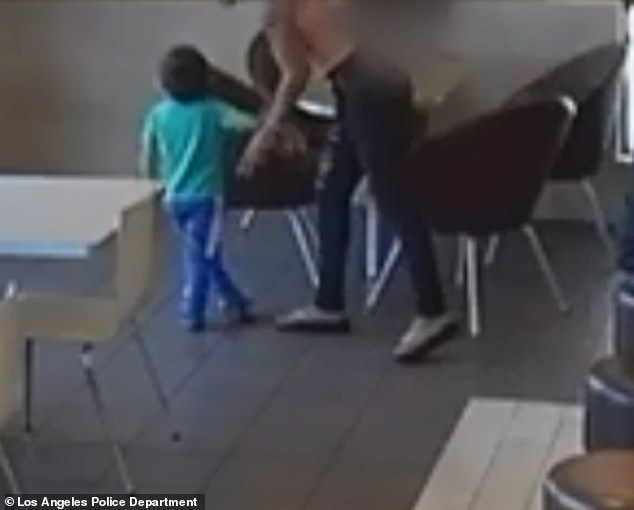 Surveillance video shows the woman approaching the little boy and walking out of the restaurant.