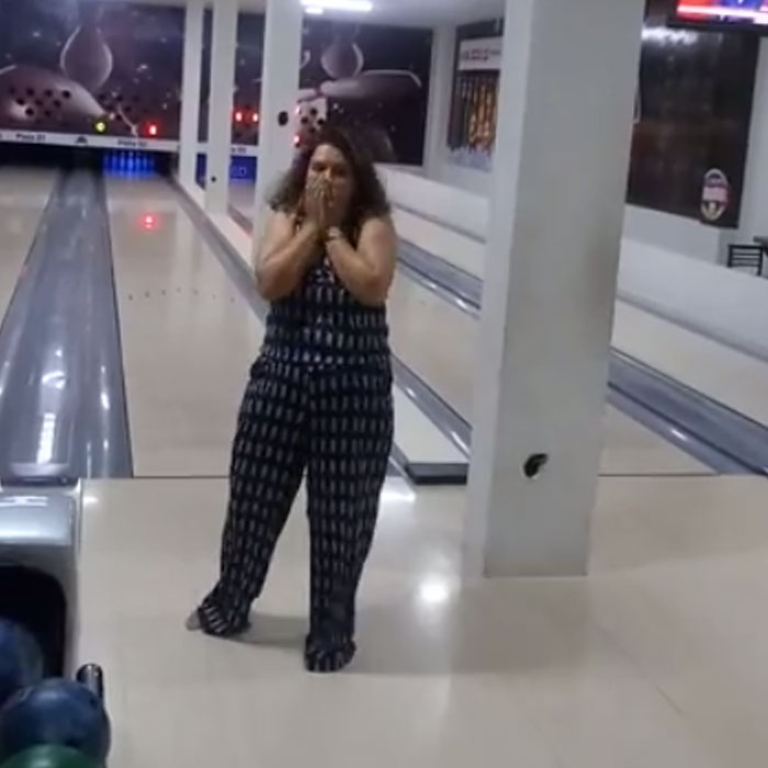 Watch the hilarious video of a Brazilian woman bowling at an alley in Cacoal is going viral on the Internet.
