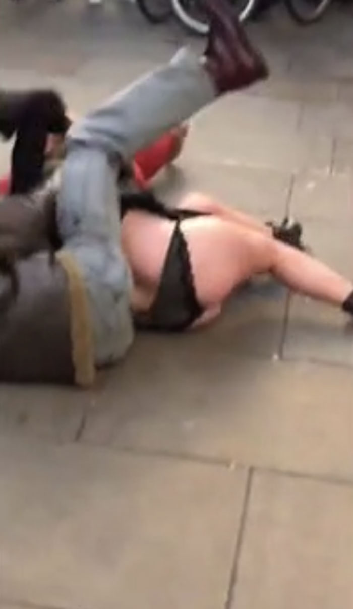 The woman with blonde hair walked towards her but her friend pulled her back down to the ground before shouting at her to stop.