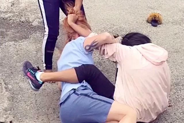 While one onlooker attempted to separate the trio, she backed off as the altercation worsened. Meanwhile, other people were seen gathering at the scene and filming the incident.