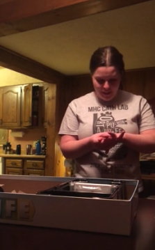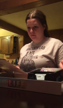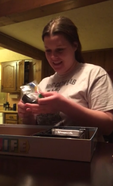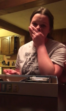 She asked him what was he doing and right then a box appeared. She opened and there was it.