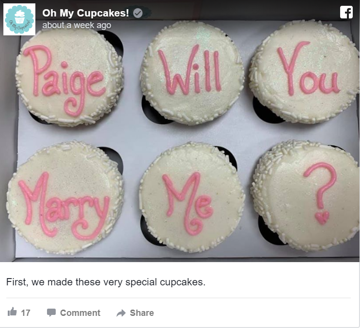 The post also said that we were all so happy being a part of such a romantic and sweet proposal. The post also stated that it was more than the cupcakes because it was all about the particular moment at that time. Congratulations to Chase and Paige.