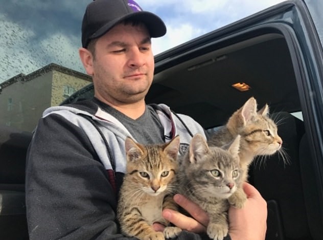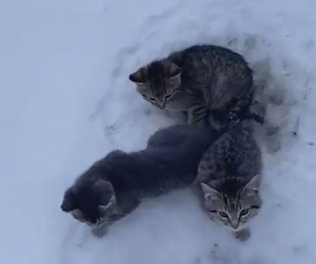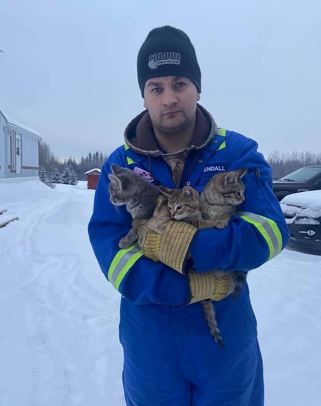 The unusual rescue mission occurred in Tomahawk, Alberta, where Canadian oil worker Kendall Diwisch discovered three adorable kittens whose tails were frozen to the ground.