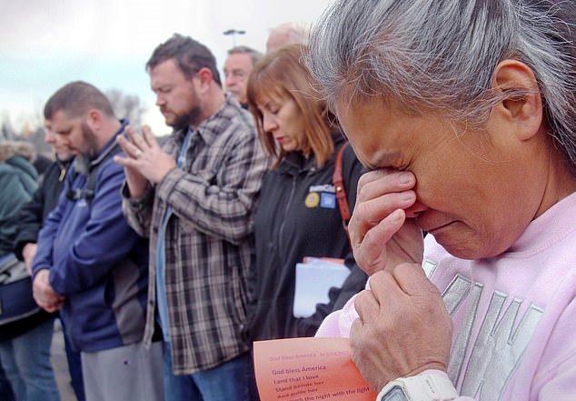 During the touching event, co-workers and their family members were seen hugging each other and holding hands while praying.