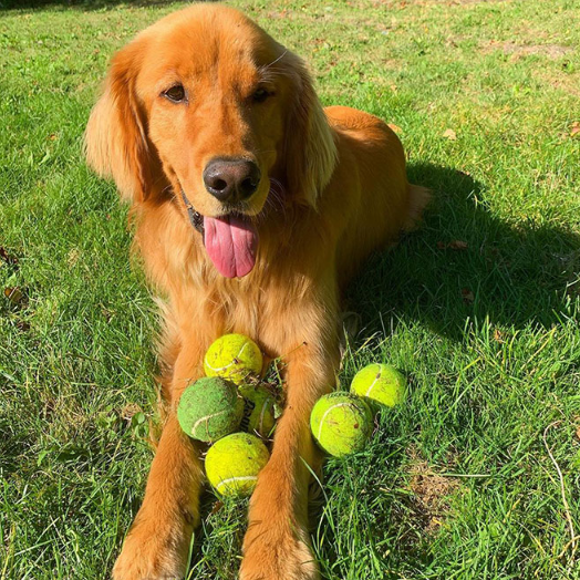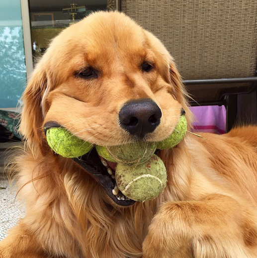 He is 6-year-old and is capable of holding half a dozen Tennis balls in his mouth all at the same time.