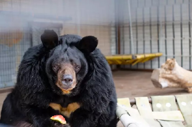 Because the cage he was locked up in was so cramped, he did not have space to walk around. That made him fat, about twice the normal size of a bear of his species. He also had issues with his feet and ankles.