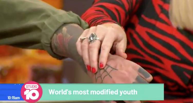 In a recent appearance at Studio 10, he showed off silicon spiders embedded into his hands.