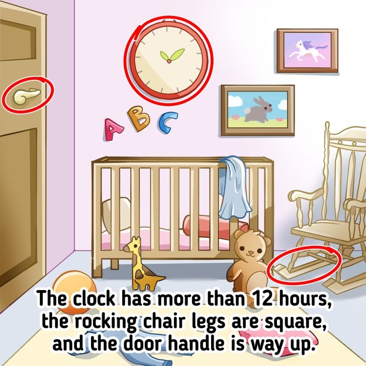 How many odd objects did you find so far? We can tell you that you’re looking for three mistakes. One is somewhere on the floor, the other on the wall behind, and the last one on the left side of the picture.