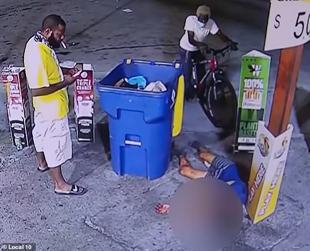 In the photos, you could see the boy holding himself up on the bin located outside of the store before he falls down to the ground. Surveillance catches these moments, showing the damage the shot has done as his head bleeds out.