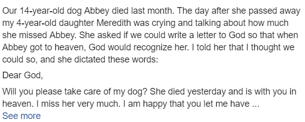 She wanted to make sure that Abbey got to heaven safe. For the same she asked her mother to help her write a letter to the god.