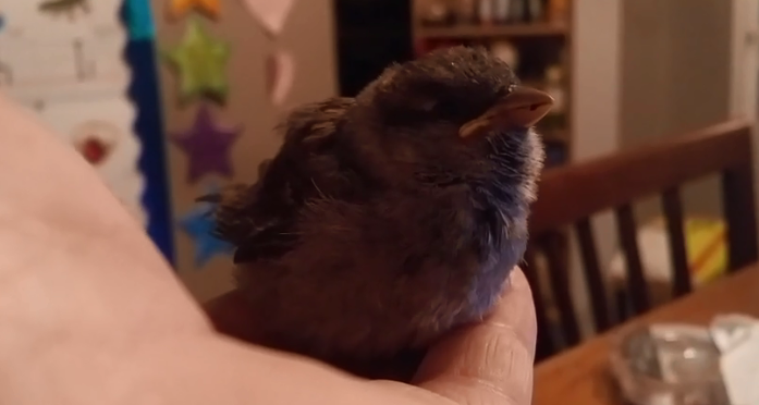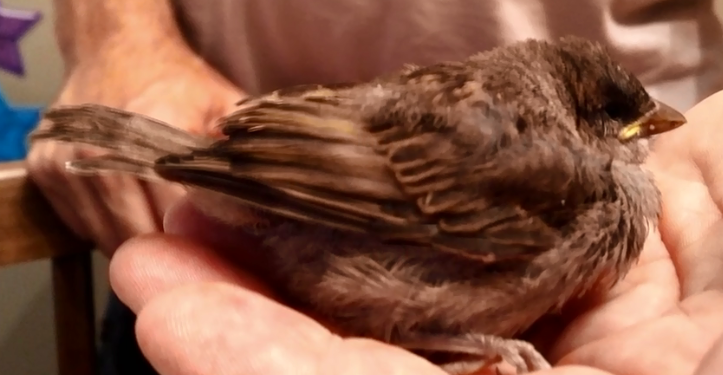 The sparrow was really comfortable with the family. The sparrow was found chirping on the palm of the man’s hand.