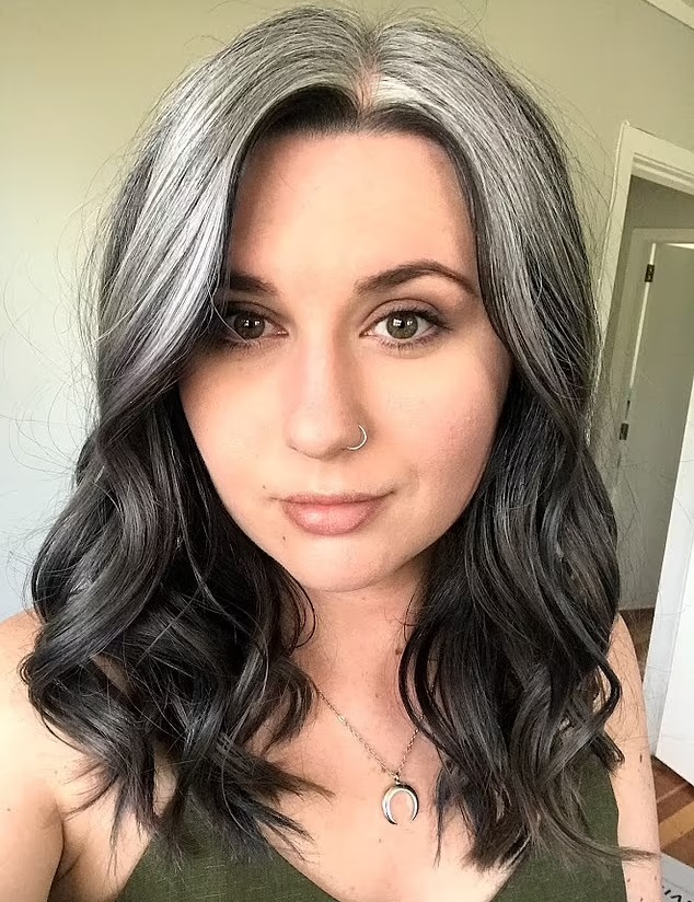 A woman whose hair started turning grey at the age of 13 has finally found happiness by embracing her natural color.
