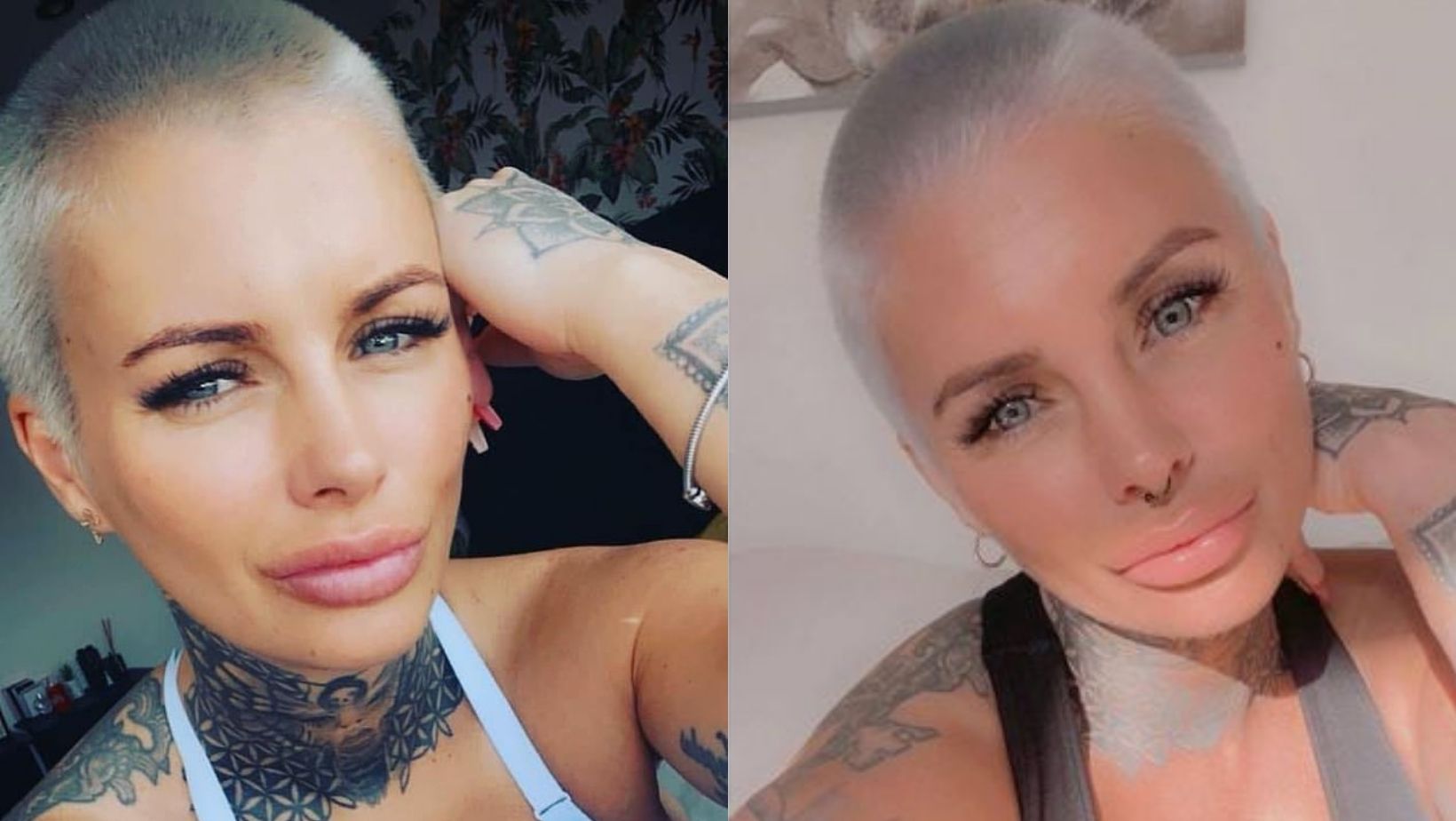 The now-33-year-old posted a picture of her new grey buzzcut, showed her neck and arm tattoos, and looked very different without her long brunette hair.