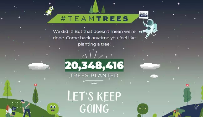 Team Trees posted on their official Twitter account: “Twenty million trees – in less than two months – is an incredible accomplishment and it belongs to all of us.