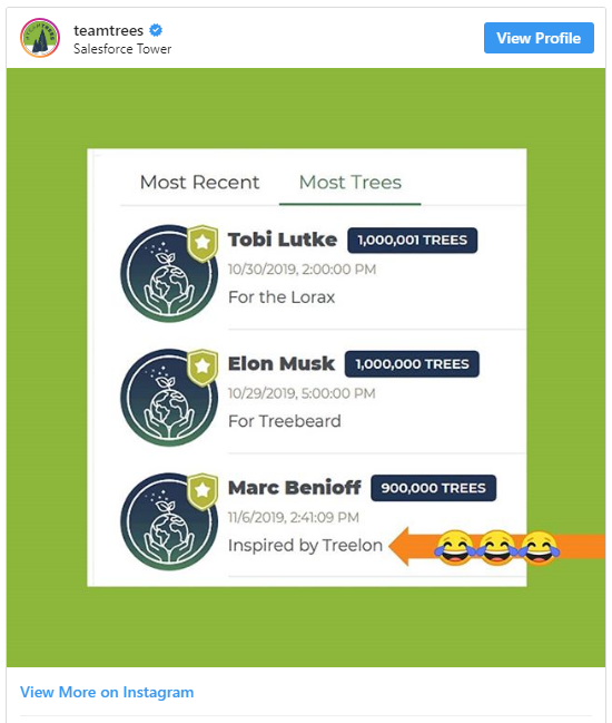 Help came in pouring from a number of channels. Even Elon Musk donated $1 million to the cause and also changed his Twitter alias to Treelon Musk.