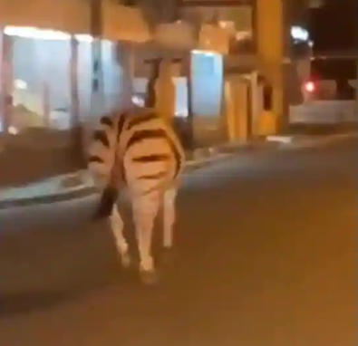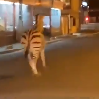 The person shooting the video gasps once the spot the striped animal but it seems, he is totally clueless about how the animal escaped and is running on the streets.