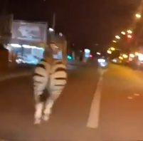 Now, that can be pretty normal but after a few seconds, it turns that a zebra is running on the road as well.